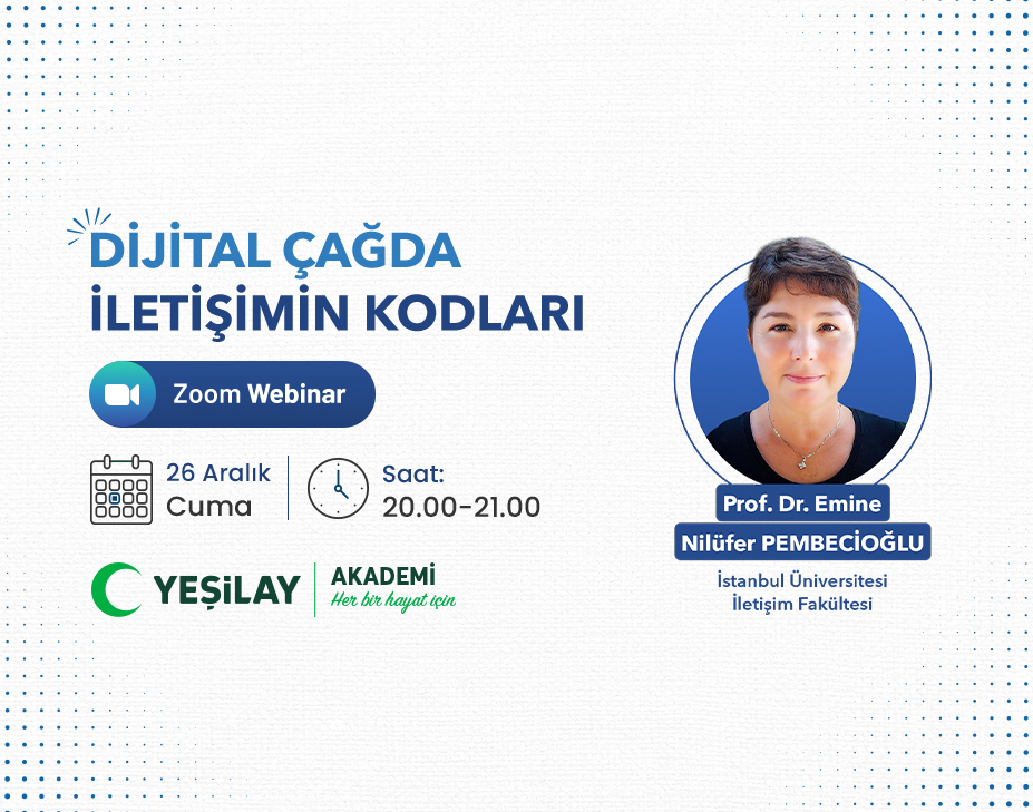 Prof. Dr. Nilüfer Pembecioğlu'nun katılımıyla gerçekleştirilecek bu webinarda, günümüz dünyasında bireylerin bilgiyle, dijital ortamlarla ve birbirleriyle kurduğu ilişki ele alınacaktır.